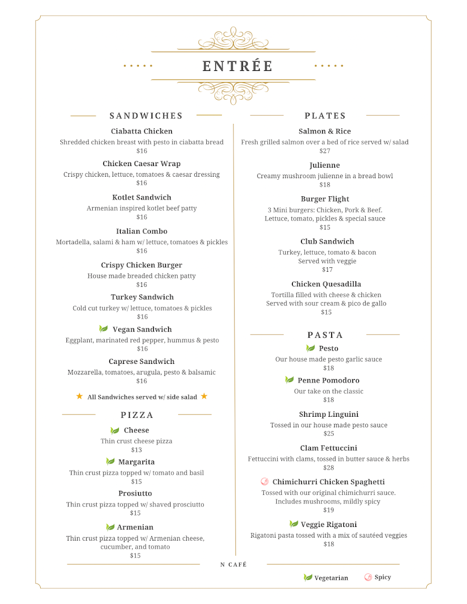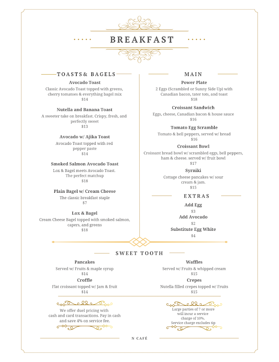 You’ll spot the N Café Menu as soon as you step into this cozy Glendale hangout, and it immediately feels like the kind of place where comfort food and casual vibes come together effortlessly. The lineup leans into hearty breakfasts, easygoing brunch plates, and familiar favorites that hit the spot without trying too hard. And since it sits right on 901 W Glenoaks Blvd, it naturally attracts everyone from locals grabbing a quick bite to folks lingering over coffee.